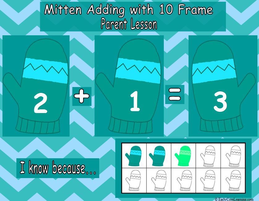 Mitten Addition Puzzles with 10 Frame (Parent Lesson)